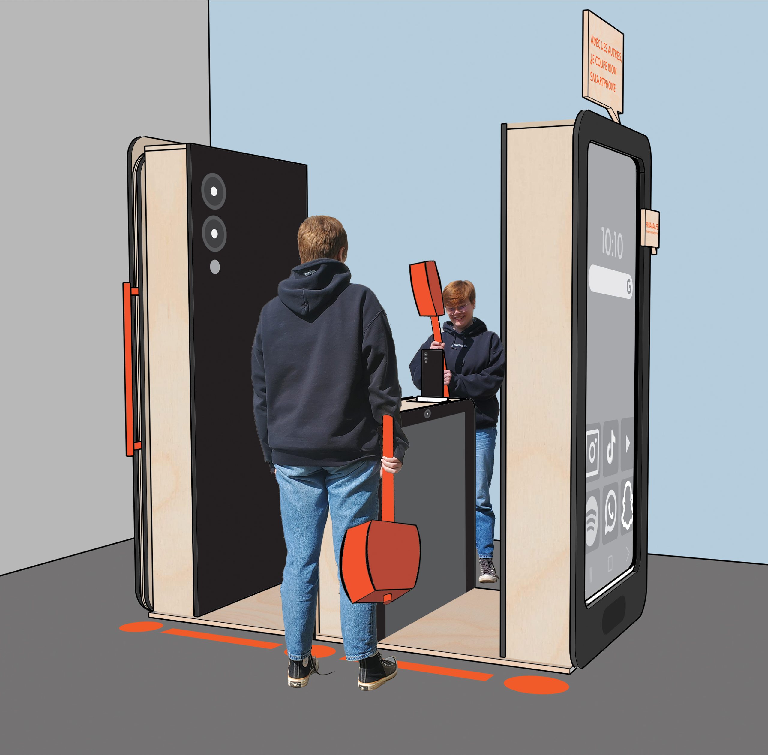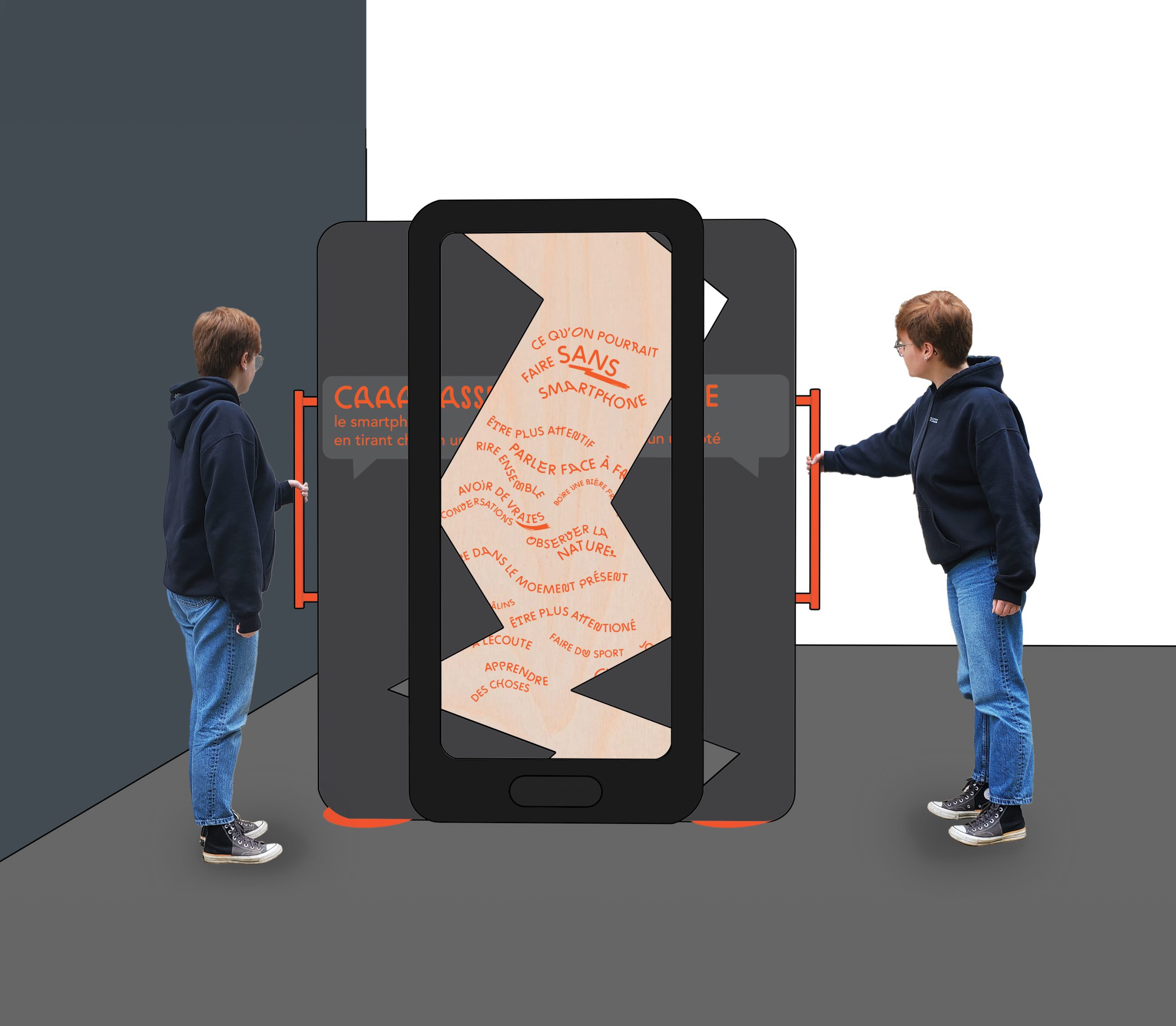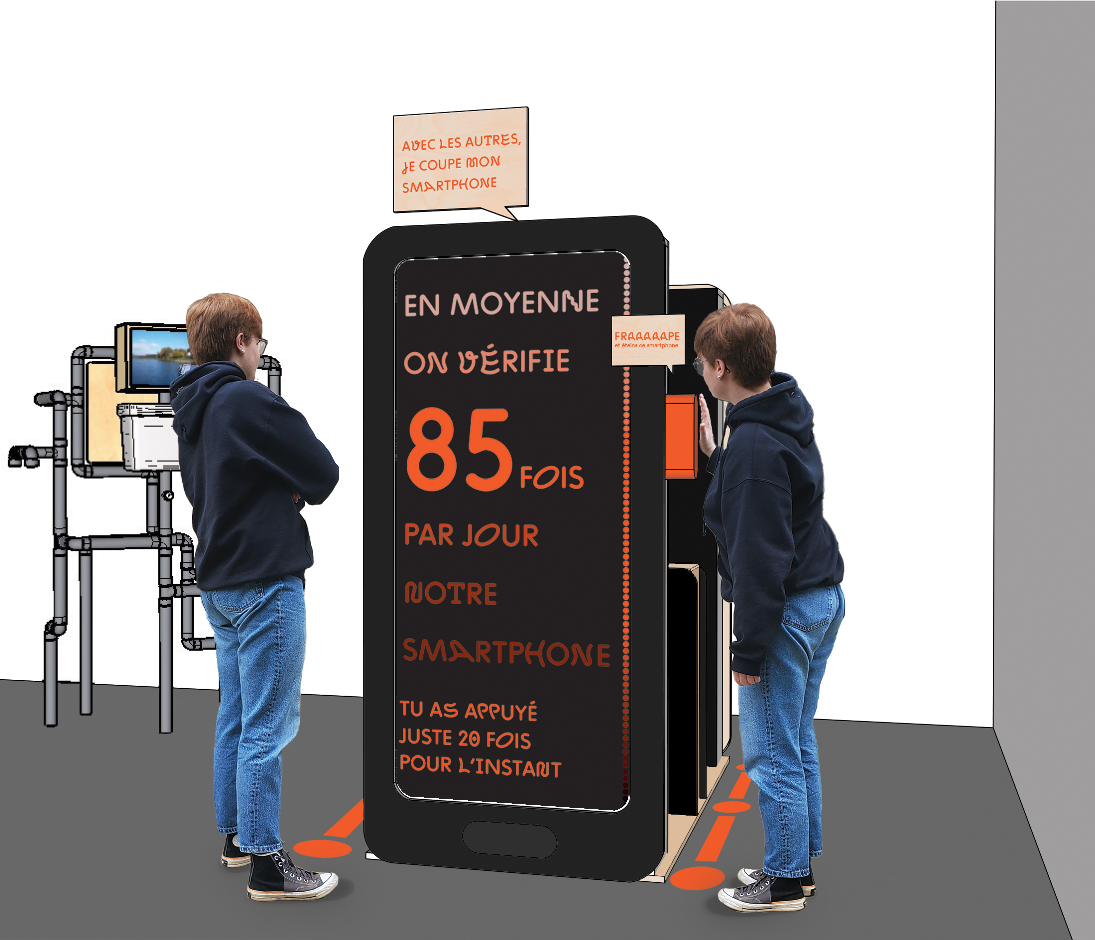 En groupe avec une designeuse espace et une designeuse produit, nous avons collaboré pour illustrer cet écogeste. La consigne était de créer un module avec trois manipulations pour sensibiliser les lycéens à des gestes du quotidien plus écoresponsables.