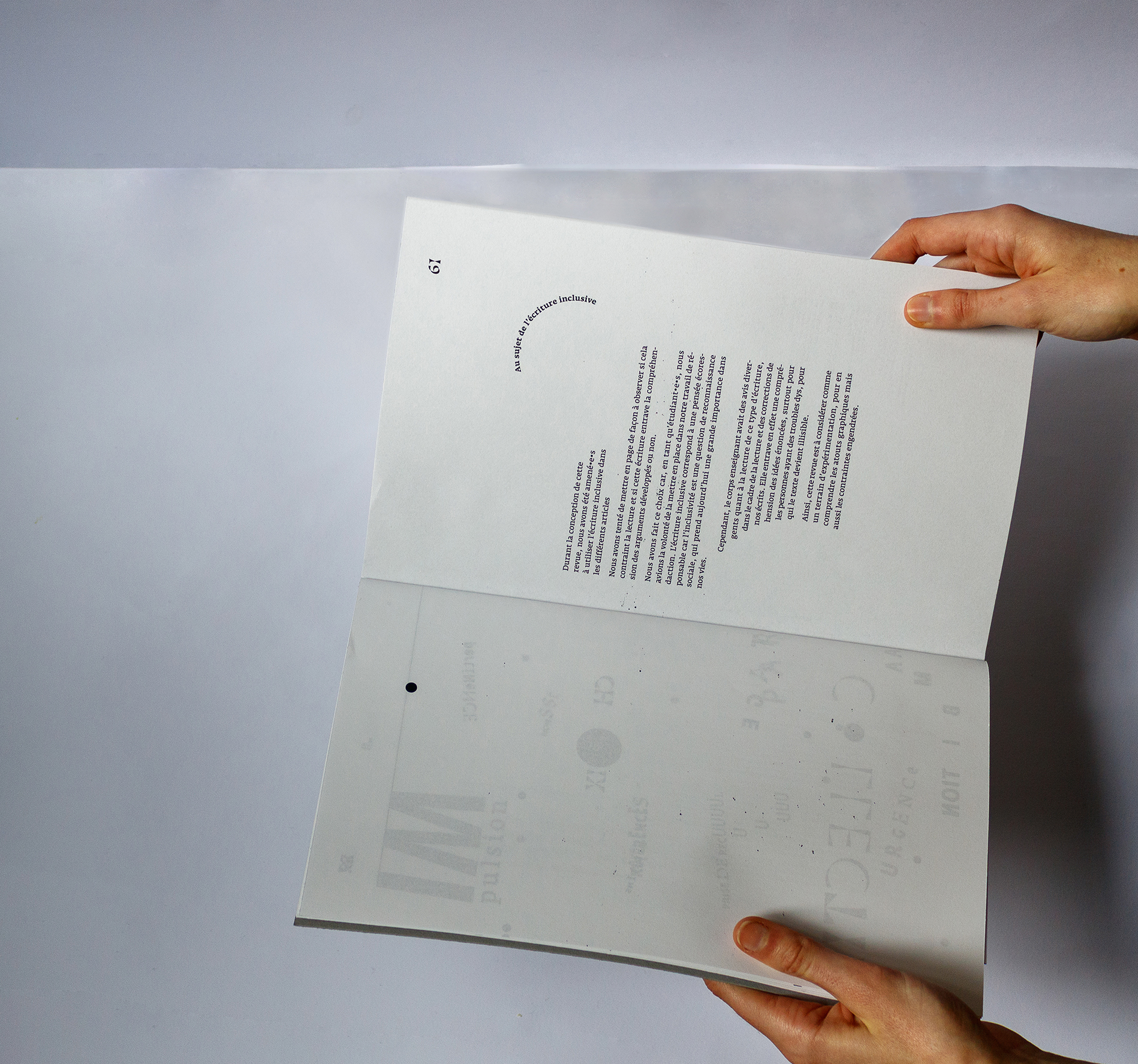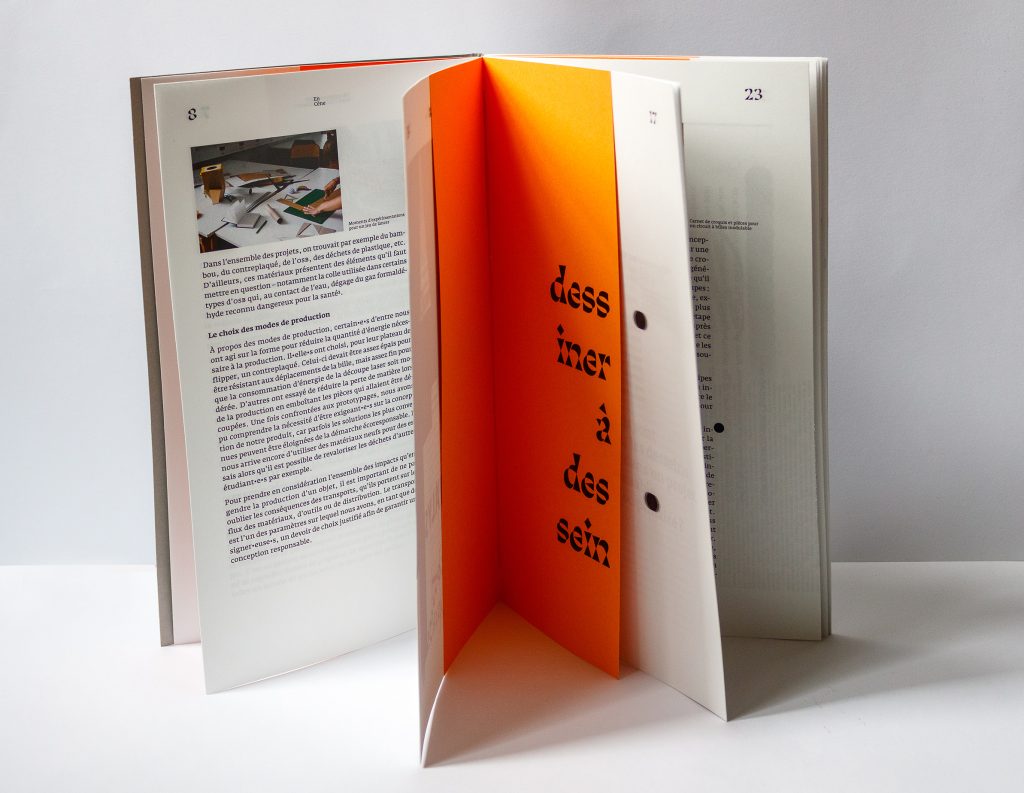 En groupe avec d’autres étudiantes de ma classe, mais de mentions différentes, nous avons conçu cette édition suite à des worshops autour du jeu. Nous avons réuni article et photos, rythmées par des compositions typographiques et des intercalaires. Nous avons aussi expérimenté un jeu avec le point de l’écriture inclusive pour en tester les limites. Celui-ci a permis de guider nos choix de composition.