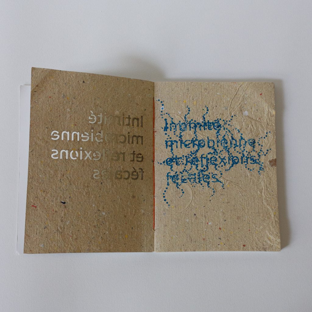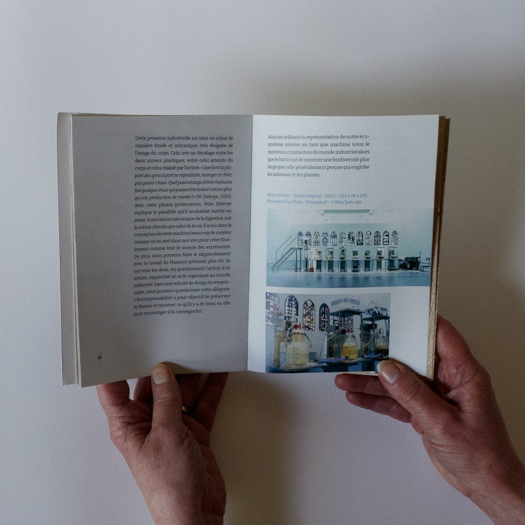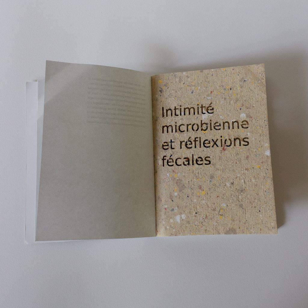 Je souhaitais montrer comment la prise de conscience d’un monde invisible dans nos entrailles peut engager des comportements écoresponsables. En comprenant que l’on doit prendre soin de notre symbiose, nous pourrions comprendre qu’il faut sauvegarder la biodiversité qui est bien plus large que ce que l’on pense. Ce mémoire a une réelle importance dans ma conception de design graphique, car il m’a permis de penser autour des « jeux de ficelles ». Cette expression, provenant de Donna Haraway, met en évidence le travail en collaboration et interdisciplinaire, car tout est étroitement lié.
