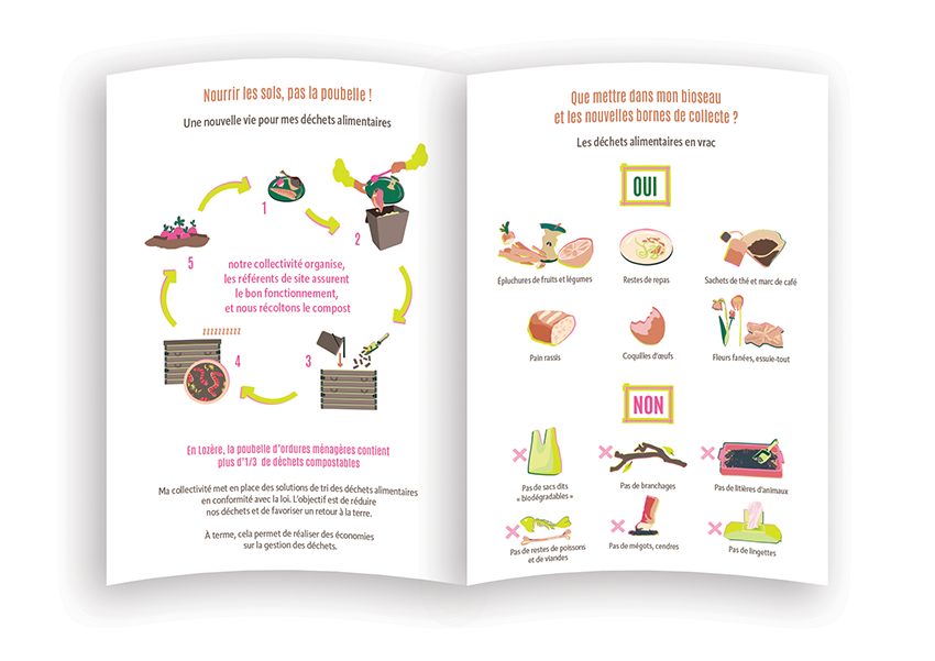 Lors de ma période lozérienne j’ai travaillé avec les Ateliers Sauvages, un duo de graphistes. Nous nous sommes associées pour répondre à l’appel d‘offre de la SDEE (Syndicat Départemental d’Energie et d’Equipement) et réaliser leur campagne « Écogestes ».